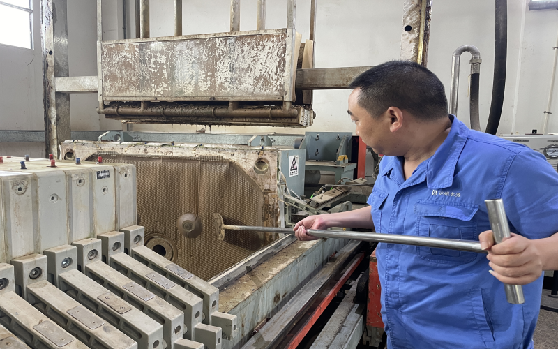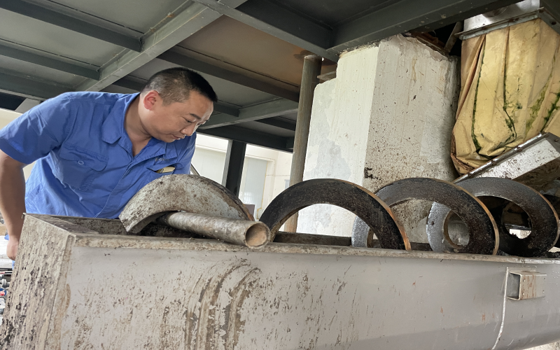 2018年1月,王穎被安排到新建成的周家壩污水廠工作,由于有污泥脫水的工作經(jīng)驗,帶頭學習新廠新設計的板框壓濾系統(tǒng)的重擔自然而然落在他肩上,他沒有抱怨新廠離家遠、交通不便利、脫水車間環(huán)境差等客觀問題,而是靜下心來一頭扎進學習的熱潮中。板框脫水系統(tǒng)看似只有進泥、調(diào)泥、壓泥、出泥幾道工序,但整套流程下來需要進行數(shù)十次步驟,還要根據(jù)泥質(zhì)調(diào)整步驟中的參數(shù),不厭其煩地記錄下每一次的試驗數(shù)據(jù),午餐時間他都毅然堅守在現(xiàn)場,同事們幫忙打來的飯,基本上是扒拉幾口便又和師傅討論起問題。尤其是炎熱的夏天“汗如泉涌”,機房的氣味刺鼻難聞,很多人不愿久干,為了能保證新廠正常出水投運,做好污泥處理的大后方,他堅持下來了,正是這樣重復的“常規(guī)操作”讓他順利出師。