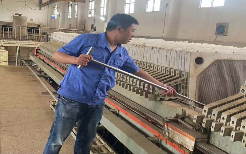 該廠一期脫泥設(shè)備為板框式壓濾機,經(jīng)處理后的污泥為含水率低于60%的干污泥,從調(diào)質(zhì)進泥到壓榨出泥需要5小時左右,一次能生產(chǎn)約4噸干污泥。該設(shè)備在完成每一次的壓濾后,需要人工將干污泥從板框上鏟除,尤其是夏季,車間溫度最高可達43度,空氣中散發(fā)的污泥惡臭氣更加濃重,他們從不退縮,堅守崗位10余小時。